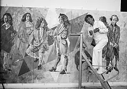 Im Auditorium im zweiten Stockwerk befindet sich das zweimal 18 Meter lange Wandbild Panta rhei, auf dem Grössen der abendländischen Geistesgeschichte dargestellt sind.