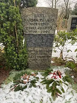 Nach seiner Pensionierung im Jahr 1963 wohnte Hans Hansen Palmus in Hamburg-Bergstedt. Er ruht auf dem Friedhof Bergstedt.