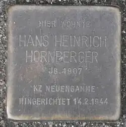 In Hamburg-Eimsbüttel befindet sich vor Hornbergers letzter Wohnadresse Kleiner Schäferkamp 48 ein Stolperstein zu seinen Ehren.