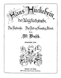 Die Geschichte vom Unglücksraben Hans Huckebein (landschaftlich für: „Hinkebein“[1]) ist ähnlich lausbubenhaft angelegt wie Max und Moritz. Wilhelm Busch war 35 Jahre alt, als er im Juni 1867 in seinem Heimatdorf Wiedensahl westlich von Hannover die Bildergeschichte zeichnete.