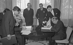 Hans Joachim Benno Hermann Gustav Oskar von Merkatz[1] (* 7. Juli 1905 in Stargard, Pommern; † 25. Februar 1982 in Bonn) war ein deutscher Politiker (DP und CDU). Er war von 1955 bis 1962 Bundesminister für Angelegenheiten des Bundesrates, daneben von 1956 bis 1957 Bundesminister der Justiz und von 1960 bis 1961 Bundesminister für Vertriebene, Flüchtlinge und Kriegsgeschädigte.