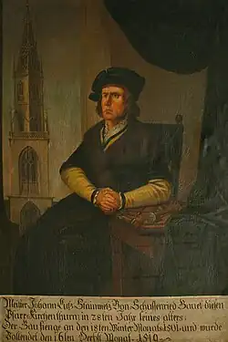 „Anno dni 1501 anfangn des Paus [des Turms der Marienkirche in Bozen] am 18 tag Winter manst/ durch maister Hanns Lutz stainmetz von schusenriet/ vollent des 16 tag Herbst Monet anno dmni Im 1519/ seines alters im 36 Jar Im 1509 Jar“.