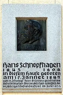 Außerdem gründete er 1873 in seinem Heimatort Oberneukirchen den "Liederkranz Oberneukirchen", dessen Chorleiter er bis zu seinem Tod war. 1907 wurde Schnopfhagen die Ehrenbürgerschaft von Oberneukirchen verliehen.