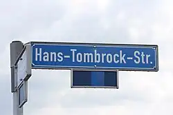 Die Stadt Dortmund benannte die neue Zufahrtsstraße zum Segelhafen am Südufer des Phoenix-Sees in Dortmund-Hörde nach ihm. Die Hans-Tombrock-Straße führt von der Hermannstraße zur Phoenixseestraße.