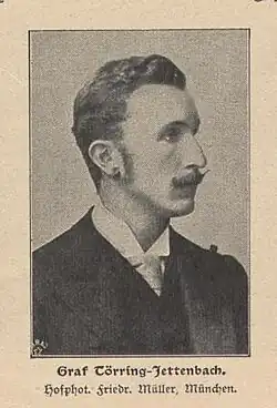 Hans Veit III. zu Toerring-Jettenbach lehnte eine von Prinzregent Luitpold von Bayern angebotene Erhebung in den Fürstenstand ab. Er war Wortführer der als liberal geltenden Opposition in der Kammer der Reichsräte und stand im Ruf, ein Demokrat zu sein. Er vertrat eine ausgereifte Sozialpolitik, wie ein Programm gegen die Wohnungsnot in München, Forderung nach Tarifverträgen in Land- und Forstwirtschaft. Als Arbeitgeber führte er eine vorbildliche Arbeitslosenversicherung für seine Bediensteten ein, wofür er mit dem Spitznamen Roter Graf bedacht wurde. 1914 kam er mit 25 Millionen Mark Vermögen und einem Jahreseinkommen von 1,2 Millionen Mark auf Platz neun der reichsten Personen in Württemberg.[2]