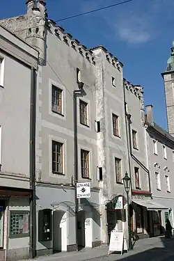 Eines seiner Markenzeichen waren runde Ecktürmchen, die im Mittelalter ursprünglich Verteidigungsfunktion hatten, dann Statussymbol spätmittelalterlicher Adelsarchitektur waren und in Enns im 3. Viertel des 16. Jahrhunderts vom Bürgertum als Zierelemente übernommen wurden.[4]