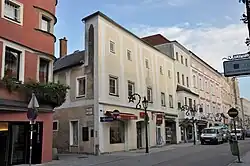 Matz kombinierte die Ecktürmchen zudem gerne mit einer Variante des Rundbogenfrieses, indem er jeweils zwei Rundbögen überkreuzt.[5] Die Kombination von Ecktürmchen mit überkreuzten Rundbogenfriesen ist in Enns vor allem auf den Häusern Bräuergasse 4a, Linzer Straße 4, Wiener Straße 8 und auch Ennsberg 1 gut zu sehen.