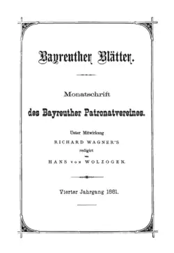 Richard Wagner, von dem die Idee für die Zeitschrift ausgegangen war, sah in den Bayreuther Blättern eine Zeitschrift zur Verständigung über die Möglichkeiten einer deutschen Kultur. Die Zeitschrift entsprach der Kunst- und Lebensanschauung Richard Wagners, hier wurden u. a. dessen letzte Aufsätze erstmals veröffentlicht. Wagner bedauerte zeitweise, Wolzogen nach Bayreuth berufen zu haben, da er sich genötigt fühlte, ihn beschäftigen zu müssen und Aufsätze für die Zeitschrift zu verfassen. Nach Wagners Tod entwickelte sich Wolzogen zu einer zentralen Figur des sogenannten „Wahnfried-Kreises“, der das Werk Wagners mit pseudoreligiöser Bedeutung aufzuladen versuchte.