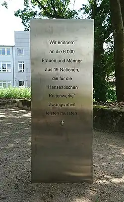 - Gedenksäule zur Erinnerung an die Zwangsarbeit beim Hanseatischen Kettenwerk auf Gedenkstätten in Hamburg