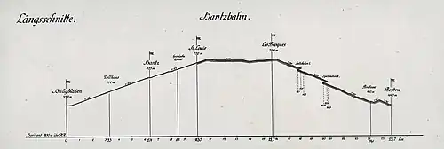 3. a b Höhenprofil der Hantzbahn (Feldbahn 0,60 m Spur) - Längsschnitte.