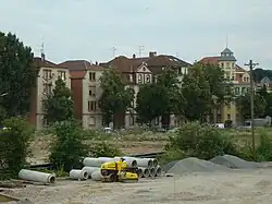 Von Juni 1945 bis November 1952 wurde das erste Obergeschoss des Hauptgebäudes als provisorischer Verwaltungssitz von der Allgemeinen Ortskrankenkasse genutzt.[2][3] Das Adressbuch von Heilbronn von 1950 nennt außerdem die Witwe Helene Hochuli und Räume der Kaffee- und Lebensmittelgroßhandlung Tscherning im Erdgeschoss, das Bestrahlungsinstitut von Meta Schmitt im zweiten Obergeschoss sowie sechs weitere Wohnmieter.[4] 1961 waren nur noch das Handelshaus Tscherning, die Witwe Hochuli und vier Mieter dort registriert.[5]