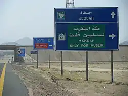 Die Grenzen des Haram sind heute außerdem an folgenden Punkten markiert: 1. auf dem Schnellweg nach Dschidda in 21 Kilometer Entfernung, 2. auf der Straße nach Jemen in 20 Kilometer Entfernung, 3. auf der neuen Hudā-Straße nach at-Tā'if in 14,6 Kilometer Entfernung und 4. auf dem Sail-Schnellweg nach at-Tā'if in 13,7 Kilometer Entfernung.[30] Eine noch genauere Definition der Haram-Grenzen mit über 40 Grenzpunkten liefert der saudische Gelehrte ʿAbd al-Malik Ibn Duhaisch (gest. 2013) in seiner Haram-Monographie von 1995.[31]