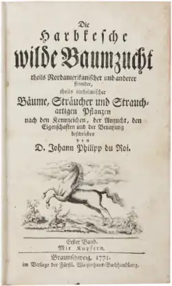 - ↑ Johann Philipp Du Roi: Die Harbkesche wilde Baumzucht theils Nordamerikanischer und anderer fremder, theils einhemischer Bäume, Sträucher und Strauchartiger Pflanzen, nach den Kennzeichen, der Anzucht, den Eigenschaften und der Benutzung beschrieben. Braunschweig 1771, Band 1. https://books.google.de/books?id=h9onAAAAYAAJ&hl=de&source=gbs_similarbooks