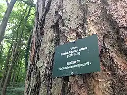 Nach dem Tode des Grafen Röttger von Veltheim (1848), Enkel von Friedrich August, wurde die Samengewinnung in Harbke eingestellt. Von den damaligen Anbauflächen ist mittlerweile nur noch das Quartier „Florida“ erkennbar und geläufig. Der vielfältige Baumbestand und ein alter Tulpenbaum im „Floridatal“, wie Ortskundige diesen Teil des Harbker Waldes seiner geschwungenen Landschaft wegen nennen,[8] zeugen hier bis heute von der Blüte früherer Jahre. An einer mächtigen Lärche hat man Friedrich August von Veltheim einen Platz gewidmet, eine Gedenktafel erinnert an den Begründer der Harbker Forstversuche. Besonders im Schlosspark sind seine Spuren immer noch allgegenwärtig. So mancher Exot hat die Zeit überdauert und hält auf diese Weise die Erinnerung an die Harbkesche wilde Baumzucht am Leben.