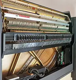 Das integrierte Klavier (Marke Schimmel) ist in den 3 dynamischen Abstufungen p, mf und f ansteuerbar. Die Dämpfungsaufhebung ist per Fußschalter vom Spieltisch angesteuert.