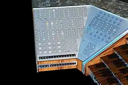 Registertasten Insgesamt stellt der Spieltisch 208 Registerschaltungen, 21 traditionelle Koppeln und 8 „Forte“-Koppeln, die die Akzentuierung einzelner Noten per schnellem Anschlag ermöglichen, bereit. Die Registertaster der Basisorgel I, II und P sind klassisch werkweise gruppiert. Das III. Manual besitzt mit dem basierenden Akkordeon und darauf bezogener kleiner Klangpyramide einen eigenen Werkscharakter im Stil einer „Salon-Orgel“. Im Gegensatz zur sonst üblichen Einfügung ergänzter Register in die Werke sind diese hier als Orchestergruppen angeordnet. Dies verdeutlicht den inneren Aufbau der Orgel als Orchester im Sinne Voglers oder Audsleys. Die Gruppen sind quasi „Floating Divisions“, die aus einer oder mehreren Reihen gewonnen werden. Der Organist weist die Register der Unitreihen in der gewünschten Lage dem gewünschten Werk zu, die Zuweisung bleibt erkennbar. Oktavkoppeln sind in einer weitgehenden Multiplexanlage nicht sinnvoll, da die Auszüge ihrerseits eine Einzelregisteroktavkopplung darstellen.