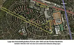 Nachdem der Nürnberger Flughafen am Marienberg im Zweiten Weltkrieg zerstört worden war, wurde die Startbahn des ehemaligen Werkflugplatzes als provisorischer Flugplatz eingerichtet. Der Industrieflughafen Nürnberg-Fürth wurde bis zum 6. April 1955 genutzt, bis der heutige Flughafen an seinem Standort im Knoblauchsland in Betrieb ging. Wenige Gebäude des alten Flughafens kann man noch auf der Hardhöhe finden, beispielsweise das Gebäude eines Möbelhauses an der Hardstraße. Der ehemalige Verlauf der Landebahn ist auch teilweise noch im Luftbild zu erahnen, insbesondere ihr westlicher Teil ist weitgehend frei von Hochbauten.