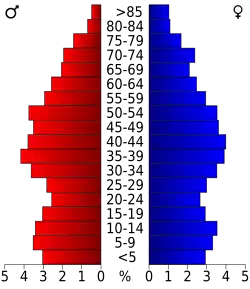 Auf das gesamte County bezogen setzte sich die Bevölkerung zusammen aus 23,3 Prozent Einwohnern unter 18 Jahren, 7,6 Prozent zwischen 18 und 24 Jahren, 28,8 Prozent zwischen 25 und 44 Jahren, 25,4 Prozent zwischen 45 und 64 Jahren und 14,9 Prozent waren 65 Jahre alt oder darüber. Das Durchschnittsalter betrug 39 Jahre. Auf 100 weibliche Personen kamen 97,5 männliche Personen. Auf 100 Frauen im Alter von 18 Jahren oder darüber kamen statistisch 96,7 Männer.