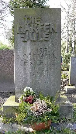 - ↑ Elisabeth Lischko, Hildegard Josten: Frauenspuren. Verdeckte Geschichte. (PDF; 1,2 MB) Luise Nordmann geb. Schulze „Harfenjule“. In: „berlin.de, die offizielle Webpräsenz des Landes Berlin“. Bezirksamt Steglitz-Zehlendorf von Berlin, Wirtschaftsförderung, Standortmarketing Berlin Südwest, 31. Januar 2008, archiviert vom (nicht mehr online verfügbar) am 15. April 2010; abgerufen am 12. März 2011: „Gedenkstein seit 1969, am Rondell Reihenstelle Abt. F; Bildhauer Franz Merk.“ Info: Der Archivlink wurde automatisch eingesetzt und noch nicht geprüft. Bitte prüfe Original- und Archivlink gemäß Anleitung und entferne dann diesen Hinweis.