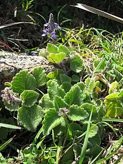 Die zwittrigen Blüten sind zygomorph und fünfzählig mit doppelter Blütenhülle. Die fünf Kelchblätter sind zu einem glockenförmigen, zweilippigen Blütenkelch verwachsen. Die fünf Kelchlappen sind deutlich ungleich. Die Unterlippe besteht aus einem breit-eiförmigen Kelchlappen. Die Oberlippe endet in fünf zugespitzten Kelchzähnen. Die Kelchröhre ist innen oft ringförmig.[2] Die fünf Kronblätter sind verwachsen. Die Blütenkronen sind oft violett bis bläulich[2] oder weiß.[1] Die Blütenkrone ist zweilippig. Die Oberlippe ist kurz vierlappig. Die Unterlippe ist ganzrandig. Oberhalb der Kelchröhre ist die Kronröhre meist gebogen und im oberen Bereich geweitet.[2][1] Es sind vier kahle Staubblätter vorhanden.[1] Der Griffel endet in zwei etwas ungleichen Griffelästen.[2]