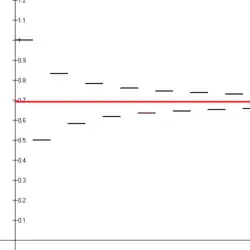 {\displaystyle M_{\text{H}}(a_{k-1},a_{k+1})={\frac {2}{{\frac {1}{a_{k-1}}}+{\frac {1}{a_{k+1}}}}}={\frac {2}{k-1+k+1}}={\frac {1}{k}}=a_{k}}