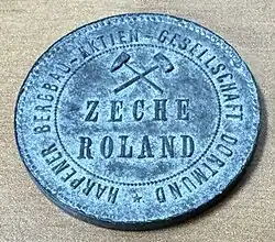 1 Mark 1916–1922 Notgeld-Münze der Dortmunder Zeche Roland Harperner Bergbau AG a
