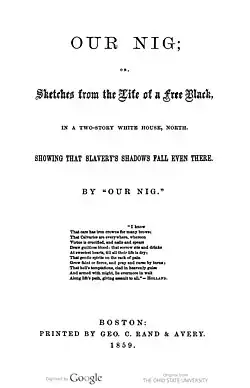 - ↑ Harriet E. Wilson: Our Nig: Sketches from the Life of a Free Black. Dover Publications, Mineola, NY 2005, ISBN 0-486-44561-5.