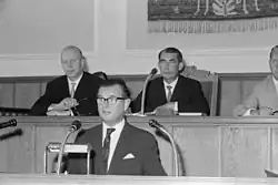 1995 folgte sein Rücktritt nach Vorwürfen wegen SA-Zugehörigkeit, dreimaligen Antrags auf NSDAP-Mitgliedschaft und Anwesenheit bei Hinrichtungen wegen Bagatelldelikten.[9][10]