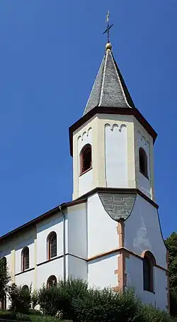 Evangelische Kirche, im Mittelalter im spätgotischen Stil errichtet, im Dreißigjährigen Krieg teils zerstört. Nach Wiederaufbau von 1698 bis 1871 als Simultaneum auch von Katholiken genutzt.[10]