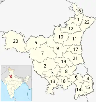 Der Bundesstaat Haryana ist in 4 Divisionen und 22 Distrikte untergliedert.