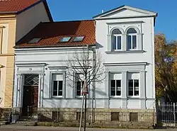 Das in massiver Bauweise erstellte Gebäude wurde in der zweiten Hälfte des 19. Jahrhunderts im Stil des Spätklassizismus errichtet. Die Fassade des an eine Villa erinnernden Hauses ist verputzt und mit Pilastern und Rundbögen gegliedert. Bemerkenswert ist insbesondere die Gestaltung des Portals.