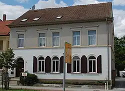 Das Gebäude wurde Mitte des 19. Jahrhunderts in massiver Bauweise in klassizistischem Stil errichtet. An der Fassade findet sich eine Putzquaderung. Die Fenster und die Tür im Erdgeschoss sind als Rundbögen ausgeführt. Im Jahr 1891 wurde das Haus aufgestockt.
