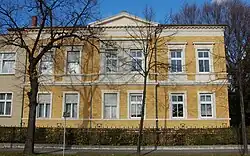 Das zweigeschossige Haus wurde um 1890 im Stil des Klassizismus errichtet. Die Fassade besteht aus gelben Klinkern, wobei die Gliederung durch Stuck-, Putz- und Sandsteinelemente erfolgt.