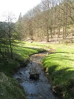 Ein Angelweiher und eine ehemalige Mühle (heute Gaststätte) liegen im mittleren Talgrund; drei weitere Mühlen existieren nicht mehr.