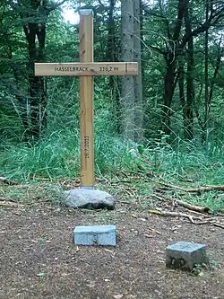 Auf dem Gipfel des Hasselbracks liegt ein Trigonometrischer Punkt, der sich im Wald nur ein paar Meter neben dem dortigen Wanderweg befindet und die höchste Stelle kennzeichnet. Seit Februar 2009 existiert dort ein Gipfelbuch in einer Blechkiste, die seit 2011 auch als Geocache genutzt wird. 2011 wurde ein recht großes hölzernes Gipfelkreuz mit den Inschriften Hasselbrack – 116,2 m und 16.7.2011 errichtet. Im Frühjahr 2013 wurde das Kreuz von den Wanderfreunden Hamburg durch einen Markierungsstein aus weißem Granit ersetzt; seine Inschrift lautet: Hasselbrack, 116 m – Höchster Punkt Hamburgs.