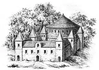 ![]() Darstellung der Hatzburg von Johannes von Schröder (1862) | ||