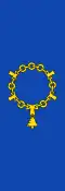 Banner: „Das Banner zeigt auf einer blauen Bahn die Symbole des Wappens.“ |