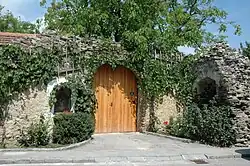 Das bemerkenswerte wuchtige mittelalterliche Gebäude aus dem 14. und 15. Jahrhundert steht an der ehemaligen Befestigungsmauer der Kirch- und Burgsiedlung Rehberg. Links vor dem Tor ist eine auf Holz gemalte Hl. Dreifaltigkeit und auf der rechten Seite ist eine spitzbogene Tür in einem Mauerbruchstück des abgerissenen Imbacher Tores.[1]