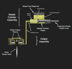 Beim Tandemhauptbremszylinder sind zwei einzelne Druckkolben hintereinander angebracht. Der Primärkolben wird dabei vom Stößel betätigt. Durch den von ihm erzeugten Druck wird der Sekundärkolben oder auch Schwimmkolben betätigt und erzeugt ebenfalls einen Druck im zweiten Bremskreis. Beim Ausfall einer der beiden Bremskreise ist immer noch der andere Bremskreis in Funktion, wobei sich der Ausfall eines Kreises durch einen verlängerten Pedalweg mechanisch bemerkbar macht.