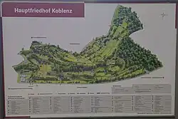 Der Hauptfriedhof Koblenz ist mit ca. 36 ha[1] der größte Friedhof der Stadt Koblenz und zugleich ein Landschaftspark. Die terrassenförmige Anlage liegt am Rand der Goldgrube am Nordhang zur Karthause; 1820 wurde sie eingeweiht. Dort befinden sich einige sehenswerte Grabdenkmäler aus dem 19. Jahrhundert wie seltene klassizistische Stelen und neugotische Grabmäler. Damit wie auch mit seinem alten Baumbestand und dem Arboretum Koblenz ist er Teil der Route der Welterbe-Gärten im UNESCO-Welterbe Oberes Mittelrheintal. Es ist der drittgrößte Waldfriedhof Deutschlands.