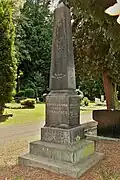 Ellenbeck, Heinrich (1864–1945) | Grabobelisk Sanitätsrat Ellenbeck, weitere Inschriften: Maria Ellenbeck, geb. Börner (1867–1893), Maria Ellenbeck (1893–1919) u. Heinz Ellenbeck (1910–1914). Nach seiner Zeit in Afrika, war Ellenbeck der erste Kinderarzt in Hilden.[7] | 51° 9′ 58,8″ N, 6° 56′ 32,8″ O | |