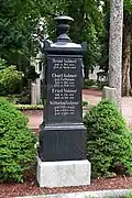 Vogelsang, Familie | Die Bestatteten sind Nachfahren des ebenfalls auf dem Obelisken aus schwarzem Marmor aufgeführten Johann Peter Vogelsang (* 7. September 1806; † 26. Februar 1878), Gründer der heute zum Wilhelm-Fabry-Museum gehörenden Kornbrennerei.[10] | 51° 9′ 54,7″ N, 6° 56′ 23″ O | 39/03 |