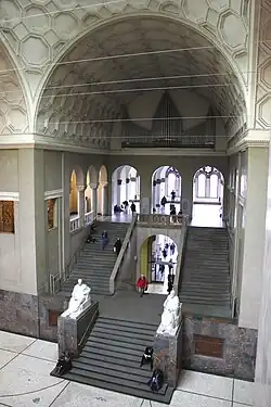 Lichthof mit Bodenmosaik. Vorn die Sitzstatuen des Prinzregenten Luitpold (links) und Ludwigs I.