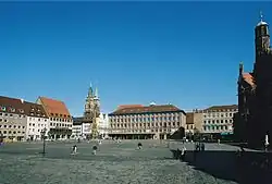 Der architektonisch bis zu seiner weitgehenden Zerstörung im Zweiten Weltkrieg sehr bedeutende Platz wurde in der Nachkriegszeit nur sehr notdürftig und vereinfacht wiederaufgebaut, bis auf die Wahrzeichen wie die Frauenkirche und der Schöne Brunnen.