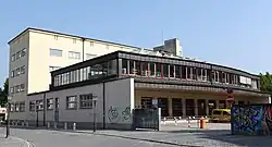 Die asymmetrische, verschieden hohe Baugruppe ist gegenüber der Hindenburgstraße zurückgesetzt und hat eine leicht gekrümmte Straßenfassade. Sie besteht aus dem viergeschossigen Hauptgebäude (plus Dach- und Kellergeschoss) mit einem abgewalmten Flachdach, nordöstlich gefolgt von dem sechsgeschossigen, schmalen Treppenhausturm mit Aufzug und zwei Uhren und einem zweigeschossigen Seitenflügel, dessen Flachdach teilweise als begehbare Dachterrasse ausgebildet ist. Die Rückseite wird hinter dem Hauptgebäude von dem 1988 gebauten zweigeschossigen Verteilungsgebäude geprägt.