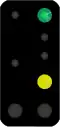| Frei mit 60 km/h (Fahrbegriff 3) | zwei grüne Lichter untereinander | ein grünes Licht rechts unten und eine gelbe „6“ darunter | - |