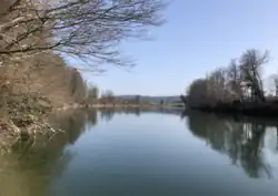 In Niederbipp zweigt die Hauptstrasse 244 am Dürrmühlekreisel auf 476 m ü. M. von der Jurasüdfussroute Hauptstrasse 5 und der mit dieser in diesem Abschnitt zusammengelegten Hauptstrasse 12 ab. Sie unterquert die Bahnstrecke Lausanne–Biel/Bienne, überquert südöstlich der Ortschaft die Autobahn A1 beim Anschluss «Niederbipp», führt weiter gegen Südosten durch das Waldgebiet «Längwald» und erreicht nordwestlich von Aarwangen das Aaretal. Hier kreuzt sie die Route der Kantonsstrasse 1438. Beim Schloss Aarwangen überquert sie die Aare auf einer Strassenbrücke, die mit 412 m ü. M. die tiefste Stelle im Verlauf der Strasse bildet. Aarwangen ist ein historischer Flussübergang, an dem seit dem Mittelalter eine Brücke stand, die ein Bestandteil der Herrschaft Aarwangen war.[1] Eine Inschrifttafel von 1758 erinnert an die Zerstörung der alten Holzbrücke. Den heutigen Übergang mit der Länge von 96 Metern errichteten die Stahlbaufirma Senn AG in Oftringen und Rothpletz/Lienhard+Cie AG in Aarau im Jahr 1997.[2] Die ältere Stahlbrücke stammte von 1889 als Ersatz für die frühere Holzbrücke und wurde 1968 verstärkt, als die Hauptstrasse als Autobahnzubringer wichtiger wurde.[3] Neben der Strassenbrücke überspannt auch die neue Eisenbahnbrücke von Aare Seeland mobil, die 2015 als Ersatz für die erste Bahnbrücke von 1907 an dieser Stelle gebaut wurde, den Fluss.