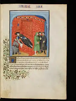 Grandes Chroniques de France de Charles V.[23] | 1375–1380 | Frankreich: Paris | Karl V. | Grandes Chroniques de France | Paris, Bibliothèque nationale, fr. 2813 | |