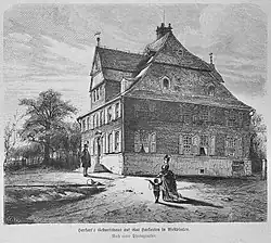 - dem ehemaligen Herrenhaus aus der zweiten Hälfte des 18. Jahrhunderts, das über eine sechsstufige Freitreppe betreten wird,