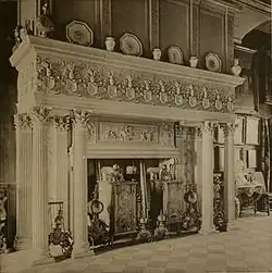In der westlichen Hälfte des Herrenhauses findet sich der Rittersaal aus dem Jahr 1651, der die gesamte Breite des Gebäudes einnimmt[11]. Die Bretter und die schlicht ornamentierten Balken der Holzbalkendecke sind sichtbar. Dies ist die einzige sichtbare Holzbalkendecke aus dieser Zeit in Westfalen, denn es war zur Zeit der Erbauung üblich, die Deckenkonstruktion unter Stuckverzierungen zu verbergen.[12] An der Stirnseite des mit einem zweifarbigen Plattenboden versehenen Raums steht ein großer Prunkkamin niederländischer Art mit einer Wappenfolge, die sich friesartig um den Kamin zieht. Im Herrenhaus existieren zwei weitere Kamine von 1562 und 1565,[13] die ursprünglich auf Haus Lüttinghof installiert waren[14] und kunsthistorisch ebenfalls bemerkenswert sind.